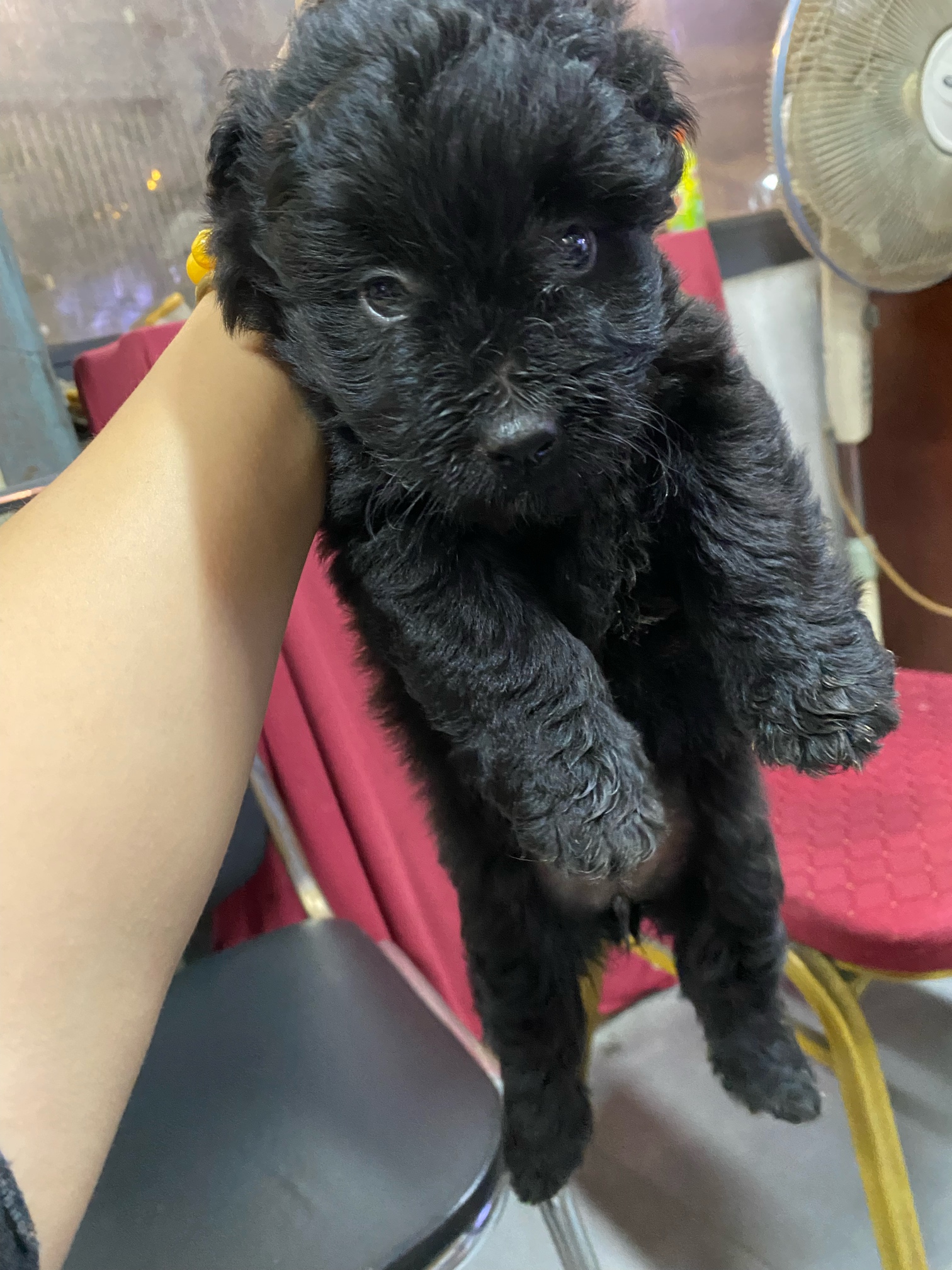 厂里生了一窝小奶狗,一共3只,一只纯黑,一只黑白,一只纯黑里带点白