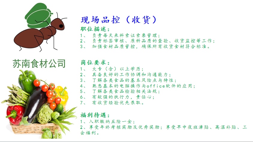 无锡市苏南学校食材配送有限公司江阴分公司招聘