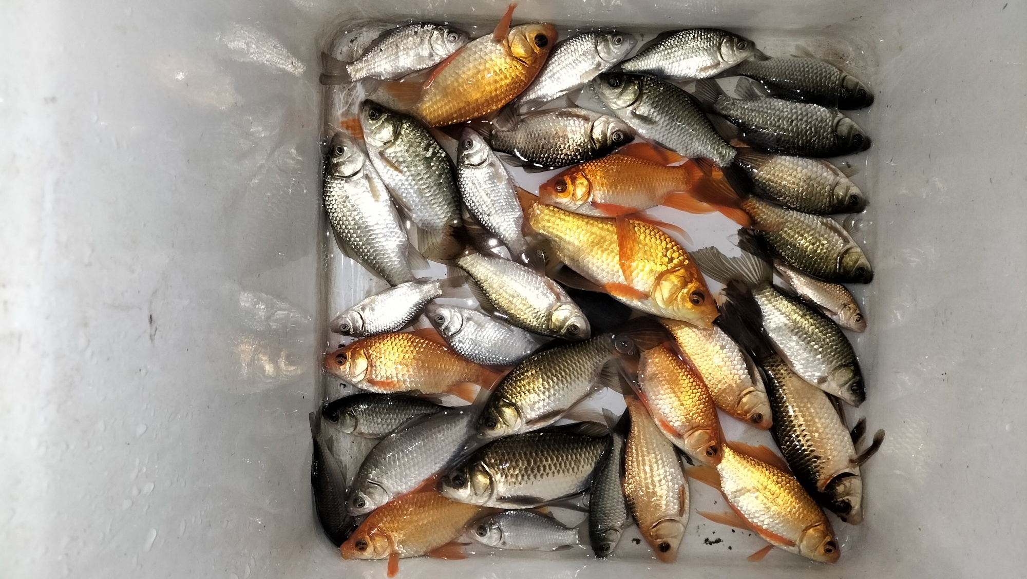 实在没地方玩,公园里钓点金鱼玩玩