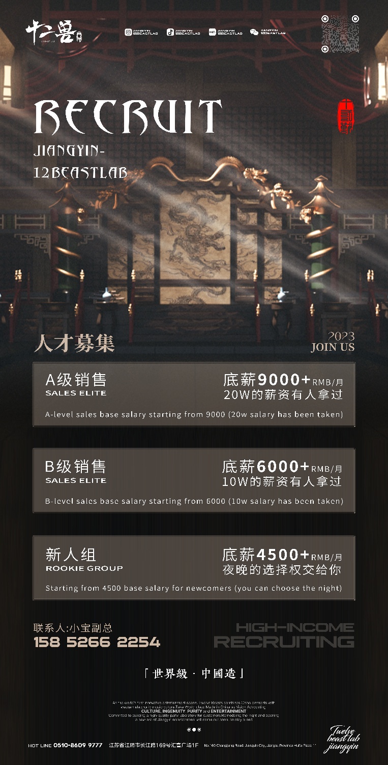 江阴十二兽酒吧招聘