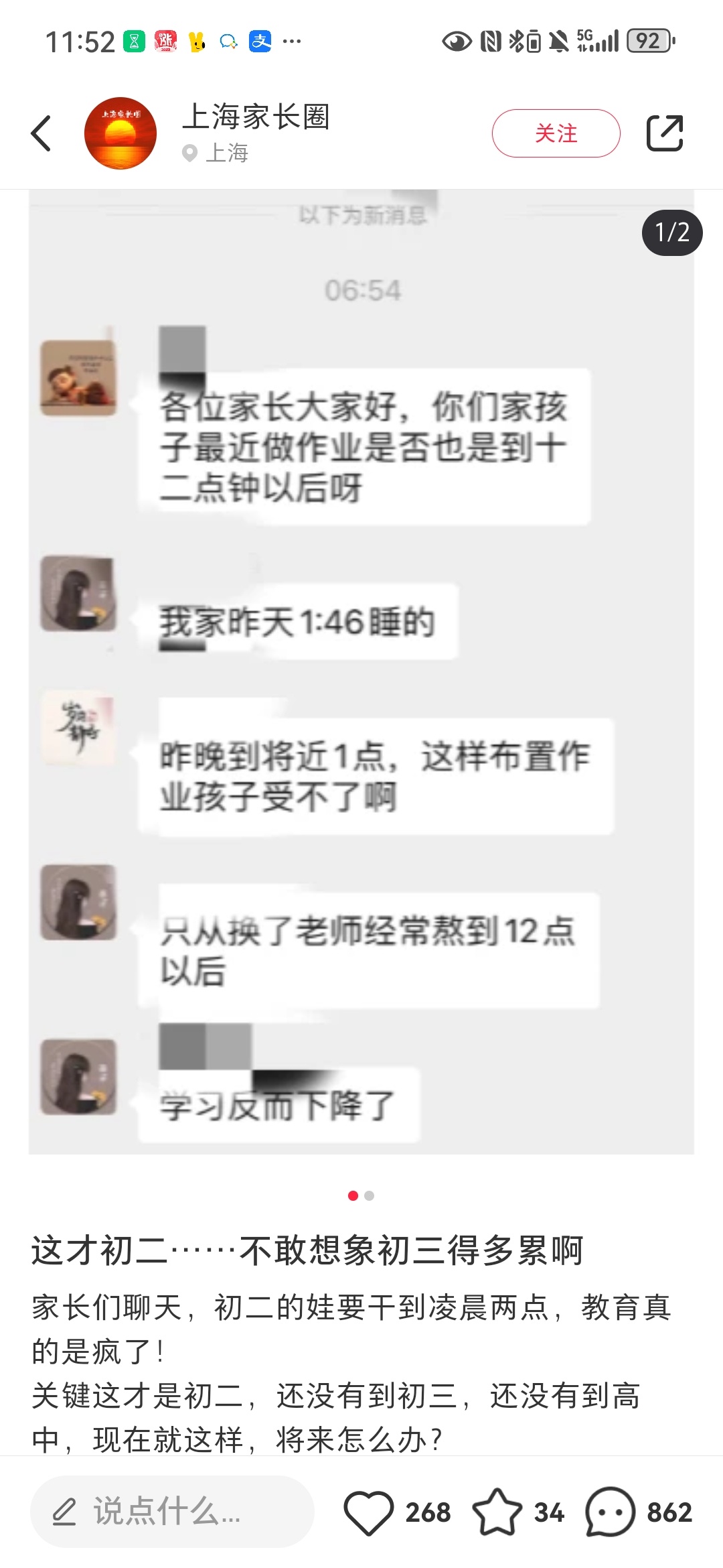 ,还要复习,背诵各科,周末都得到11点多以后才能睡觉