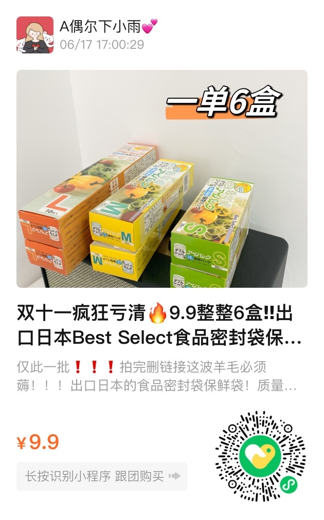 双十一冲单9.9元6盒食品密封袋