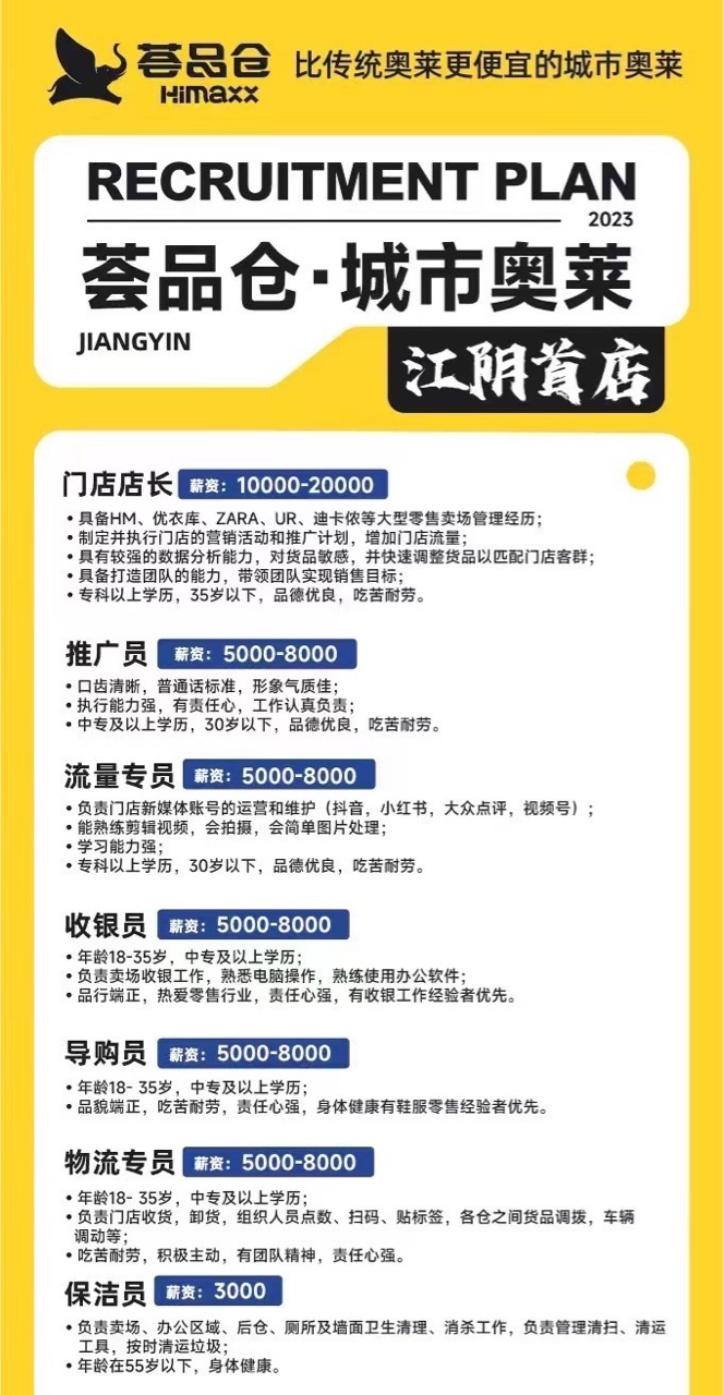 荟品仓招聘导购保洁