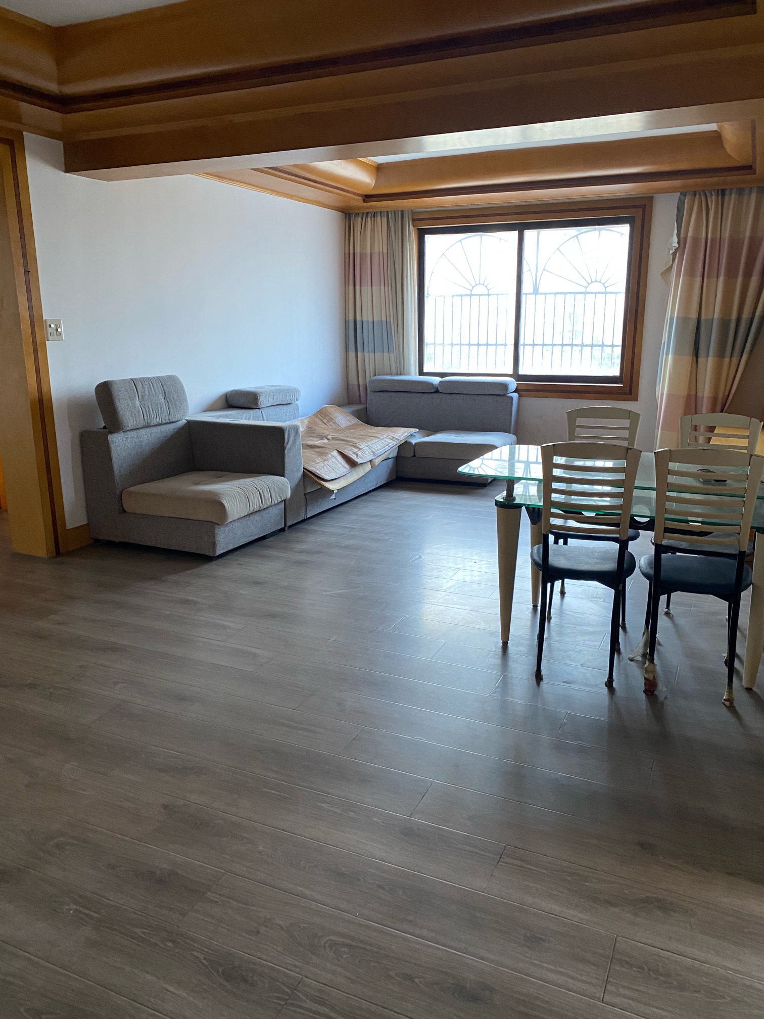 花园路3楼110平米,柚木装1300一月。