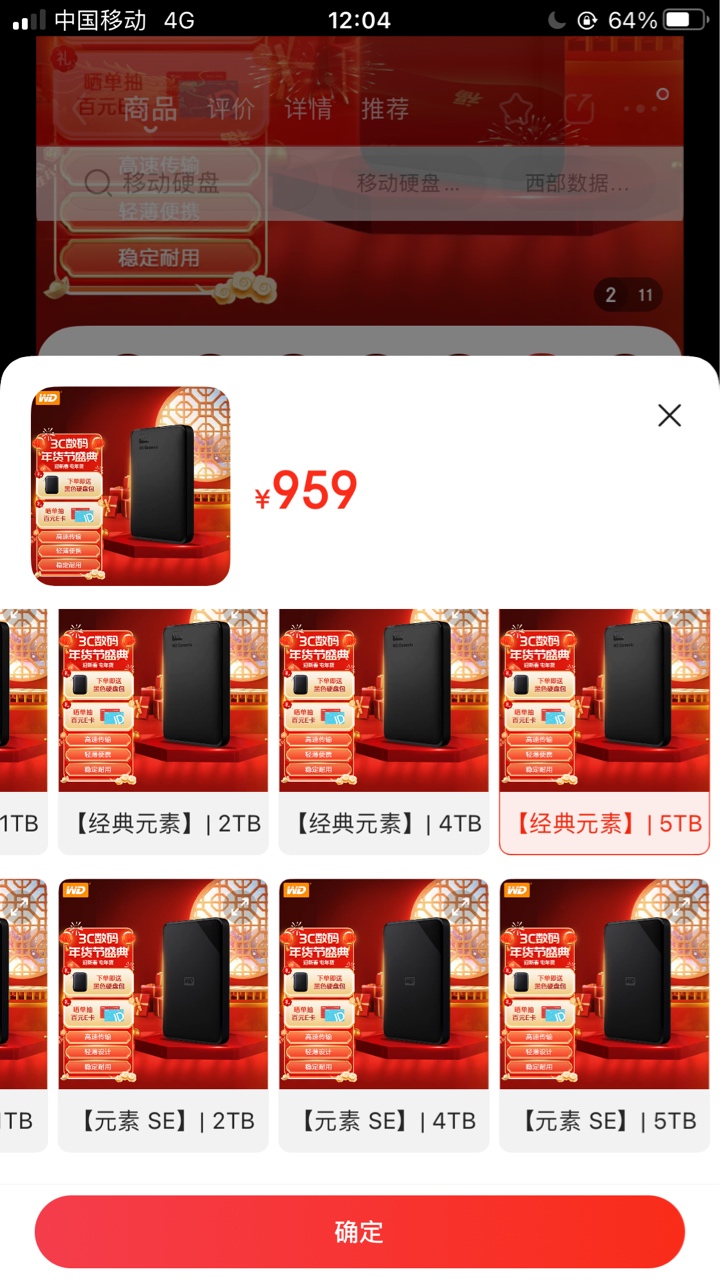 全新wd移动硬盘5TB