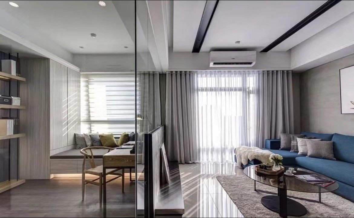 ▲书房和客厅之间用了隔断设计,温馨舒适,原有的空间封闭狭小,通过打通墙面,不仅视觉美观大气,而且在视觉上扩大了空间感。