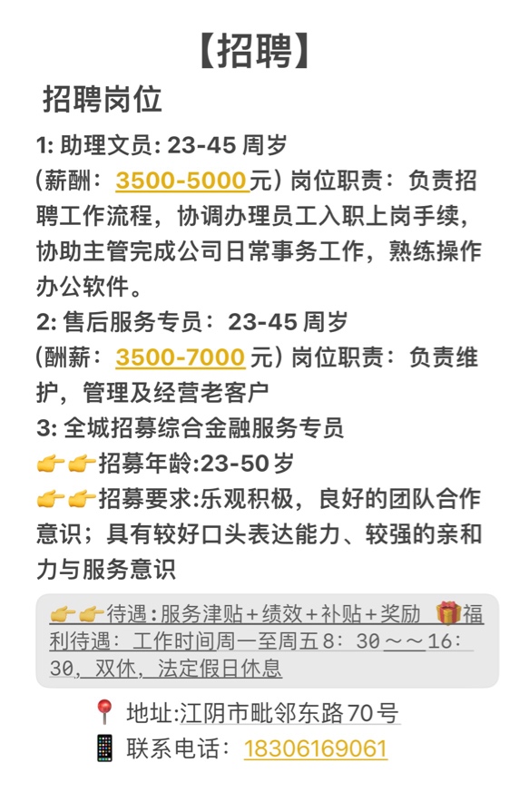 2: 售后服务专员:23-45周岁(酬薪3500-7000)岗位职责:负责维护,管理及经营老客户