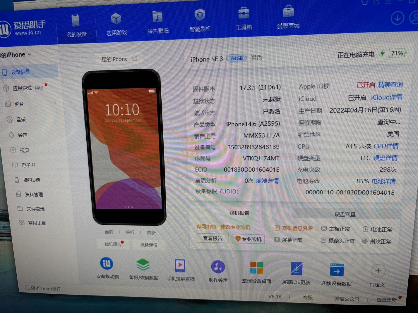 美版se3 64gb 全原无拆,一直当备用机使用。工作原因要用安卓机了,带三个手机太麻烦了。就背面两个小划痕,带壳无视。送钢化膜手机壳。买了esim,电信卡也能使用。不教使用卡贴,自己淘宝买个卡贴几块钱教你装的。