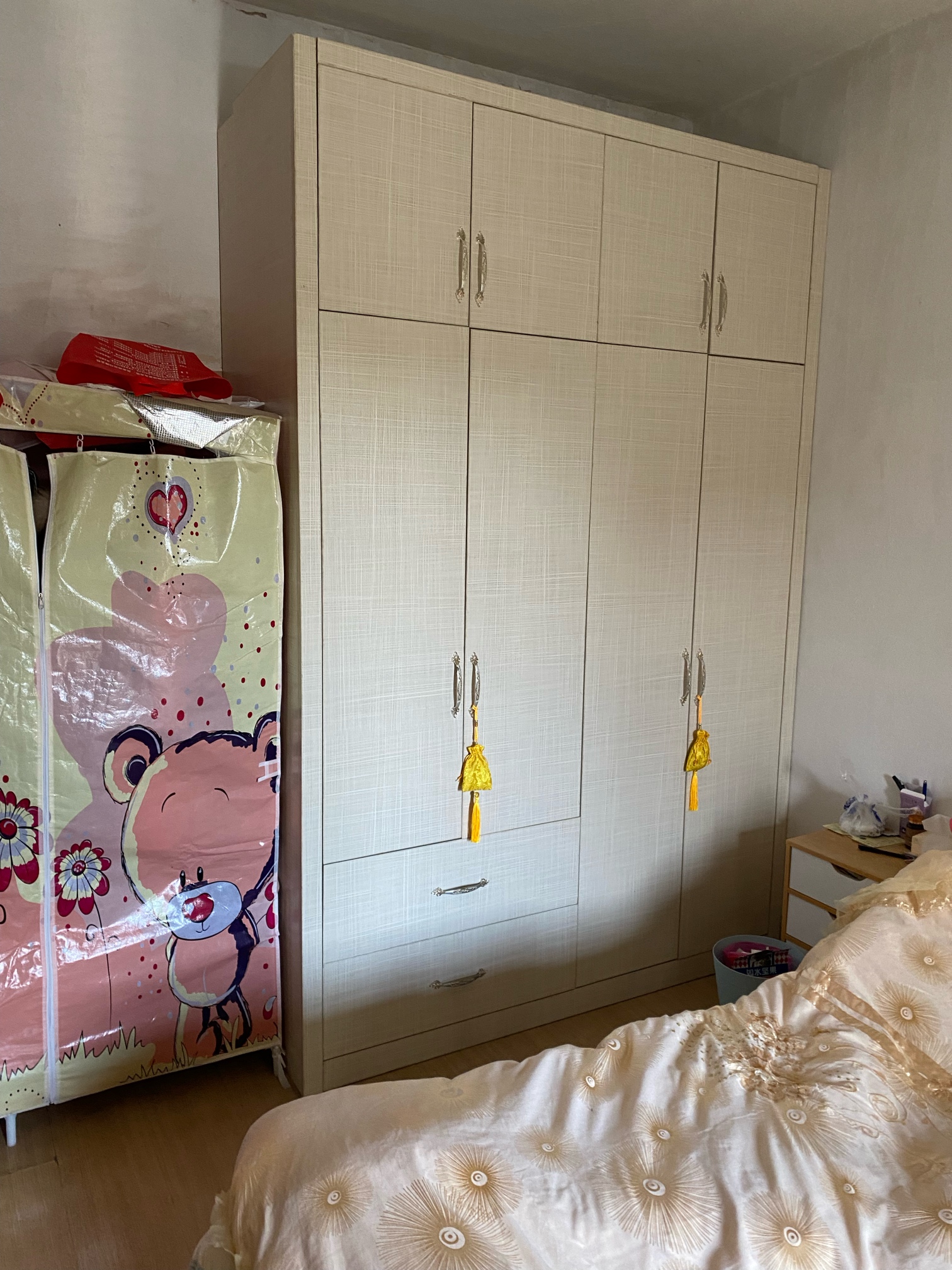 城东新出租房源:天鹤三村4楼75平米,柚木装1250一月。