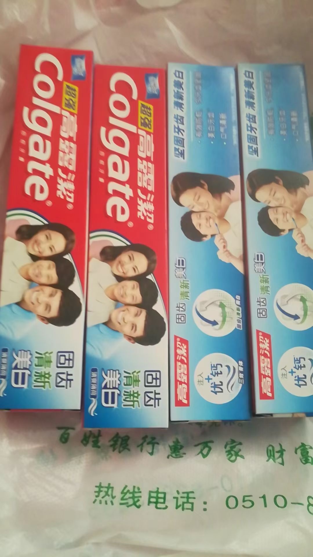 高露洁牙膏90克一支共4支,单位发的用不完,8元出售,城东。
