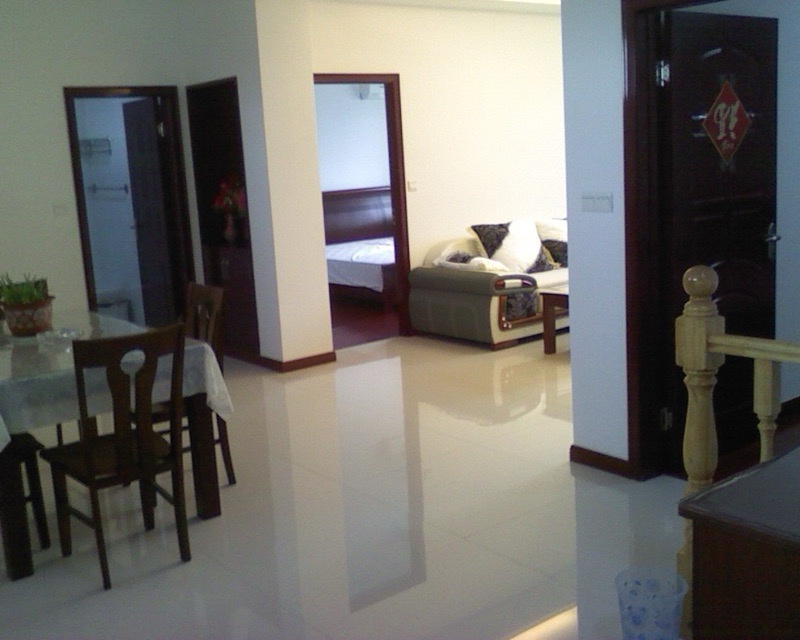 花园二村5楼85平米,柚木装1400一月。