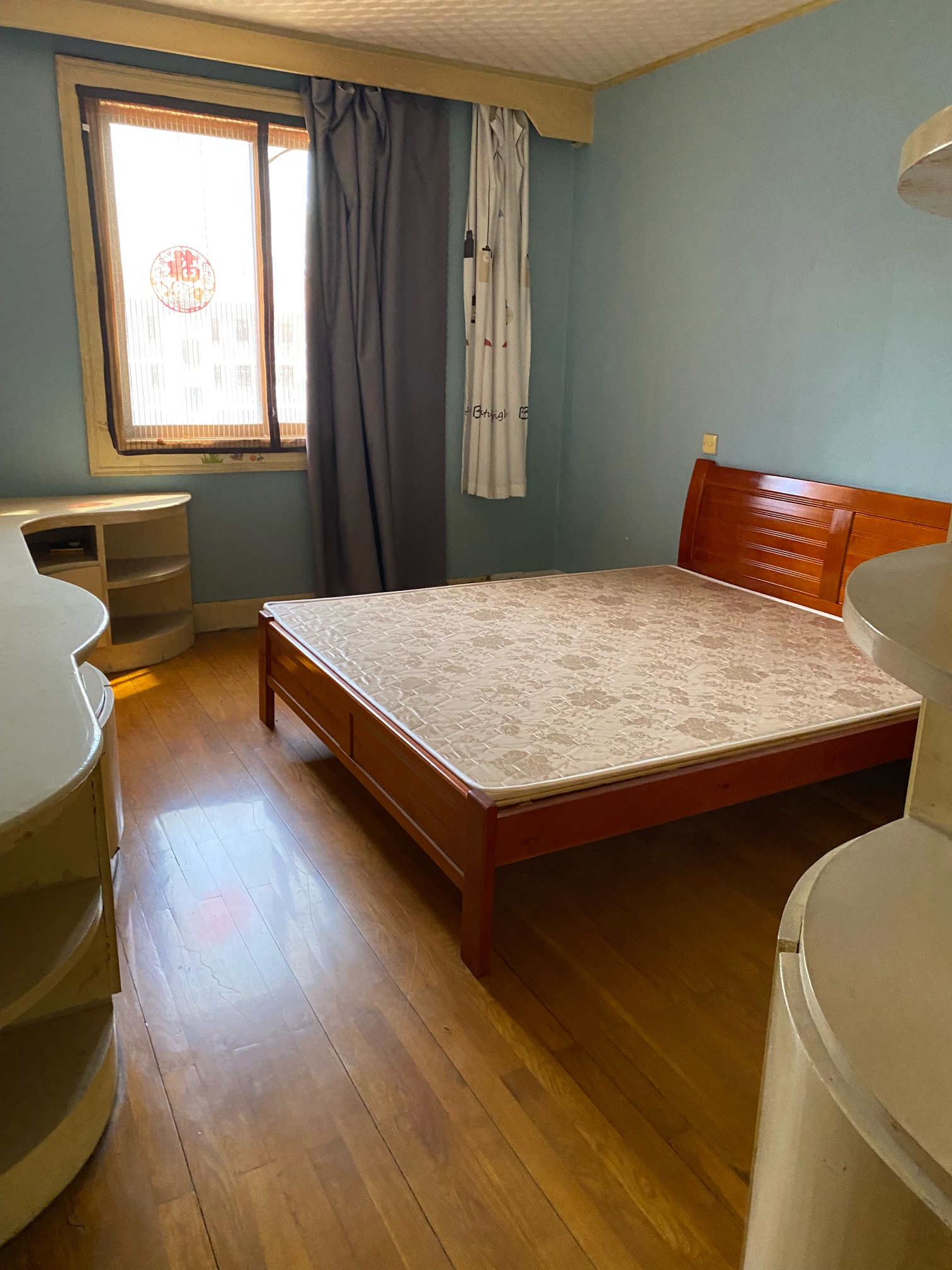 公园新村3楼85平米,柚木装1500一月。