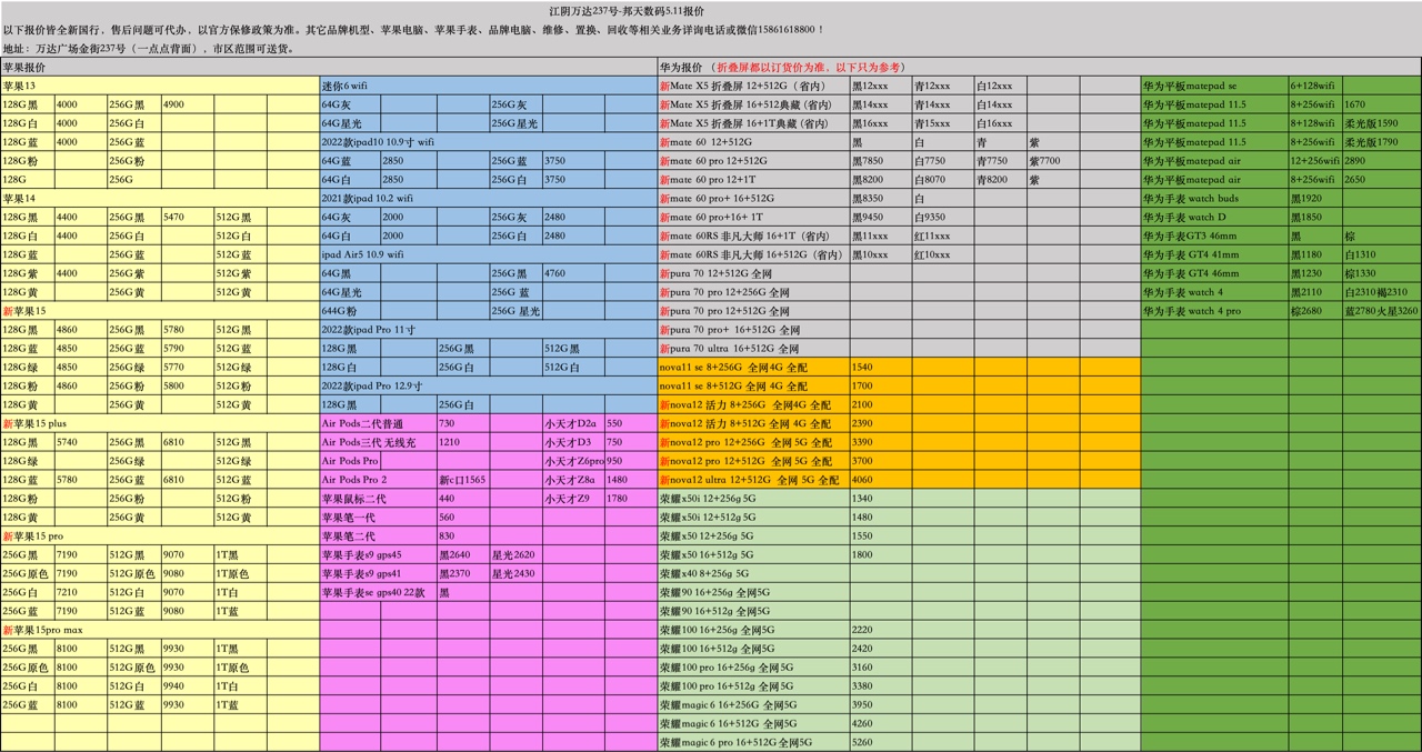 苹果华为荣耀5.11报价