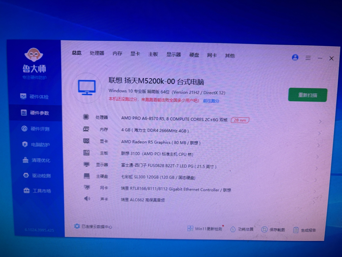 A6 8570 ddr4 4g 120g固态,成色新,有6台,199一台电话微信15861617896