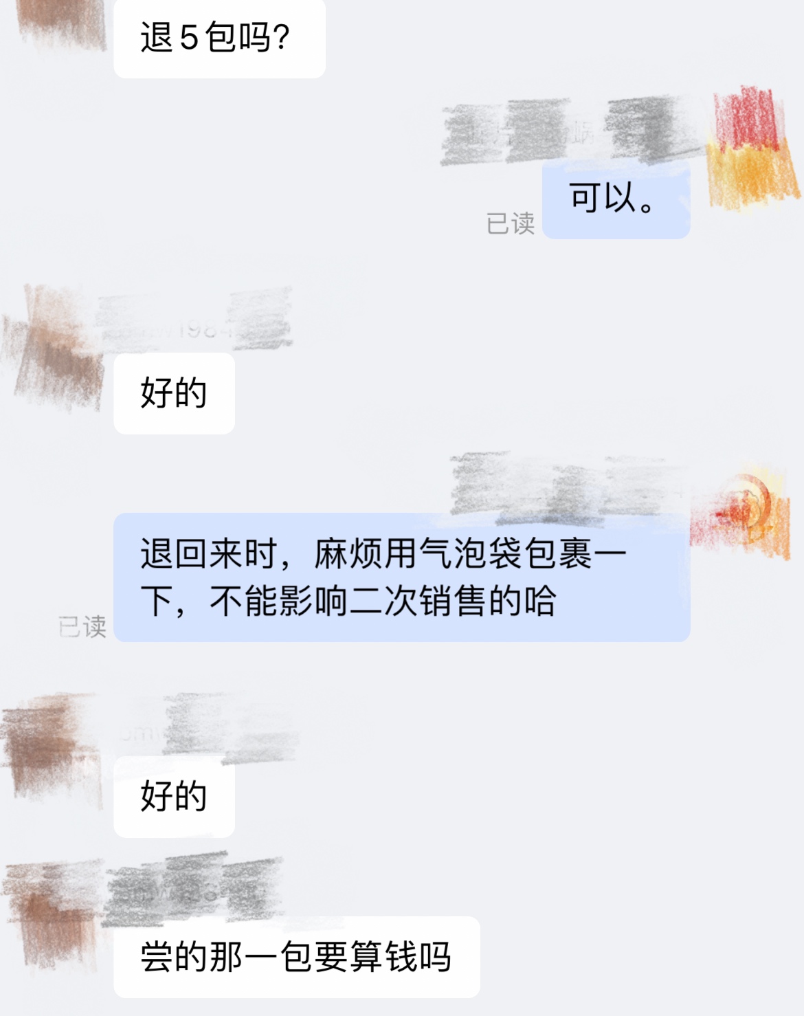 太奇葩了,不惯他们。就说快递运输难免好了。几包,大气点,就返个3一5毛就行。
