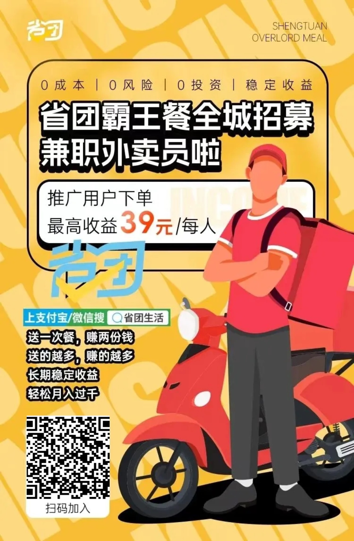 省团霸王餐招兼职外卖员啦