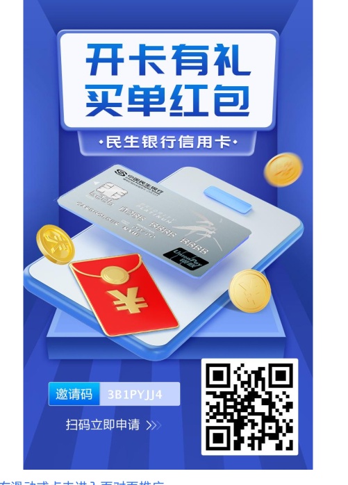 扫码直接申请民生信用卡,下卡更有豪礼