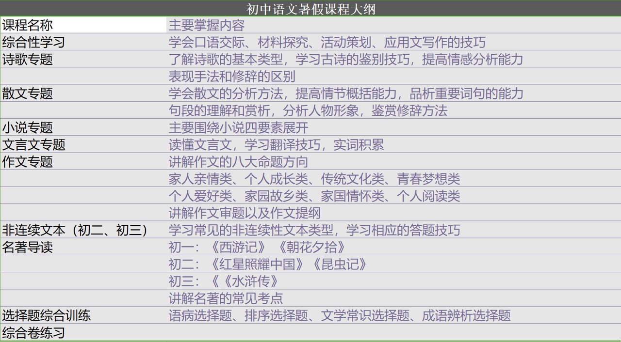 暑假教学大纲如下