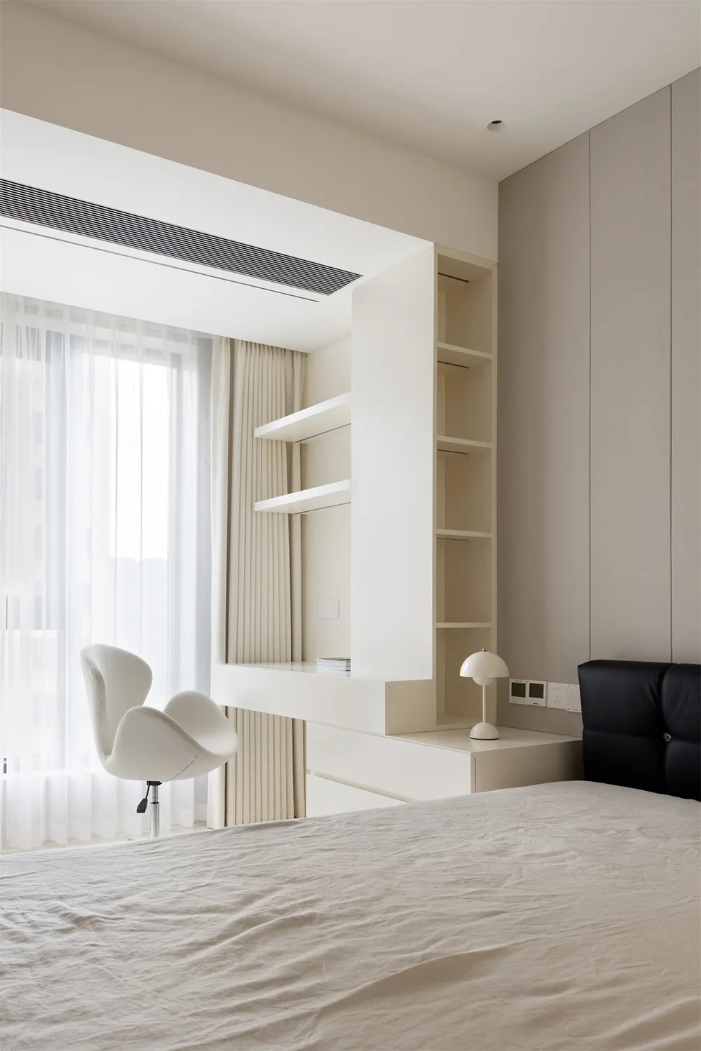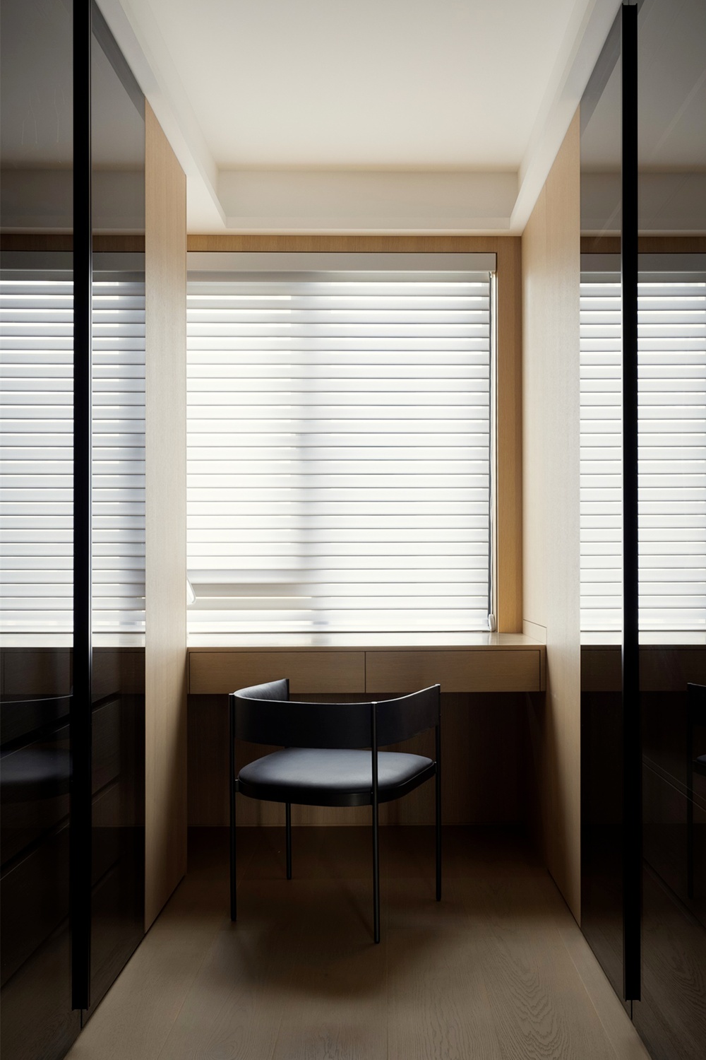 整体的设计以原木色为主基调,温馨而质朴。墙面的细腻质感与地面的清冷光泽相互映衬,营造出一种和谐而富有层次的美感。