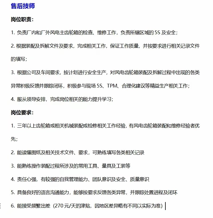 石庄齿轮箱招一名售后 长期出差