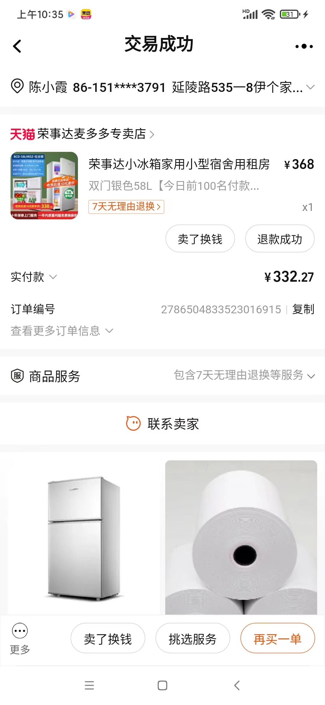 双门小冰箱只用了一年不到180元出,适合单身人士。市区送货