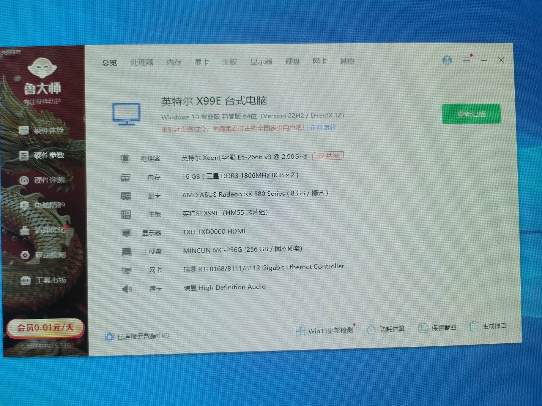 出E5 2666V3+RX580 8G 电脑主机一台!主板、256G固态、机箱是全新的!显卡为2304sp满血版全接口,有DP,HDMI,DVI,光主机,不连显示器!主机可以玩吃鸡,永劫无间,魔兽世界,传奇,梦幻,剑网三,赛博朋克2077,仙剑7等!价格950元,地址申港,微信:zx1174648772