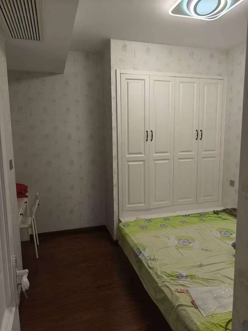 文定四村3楼90平米,柚木装1400一月。