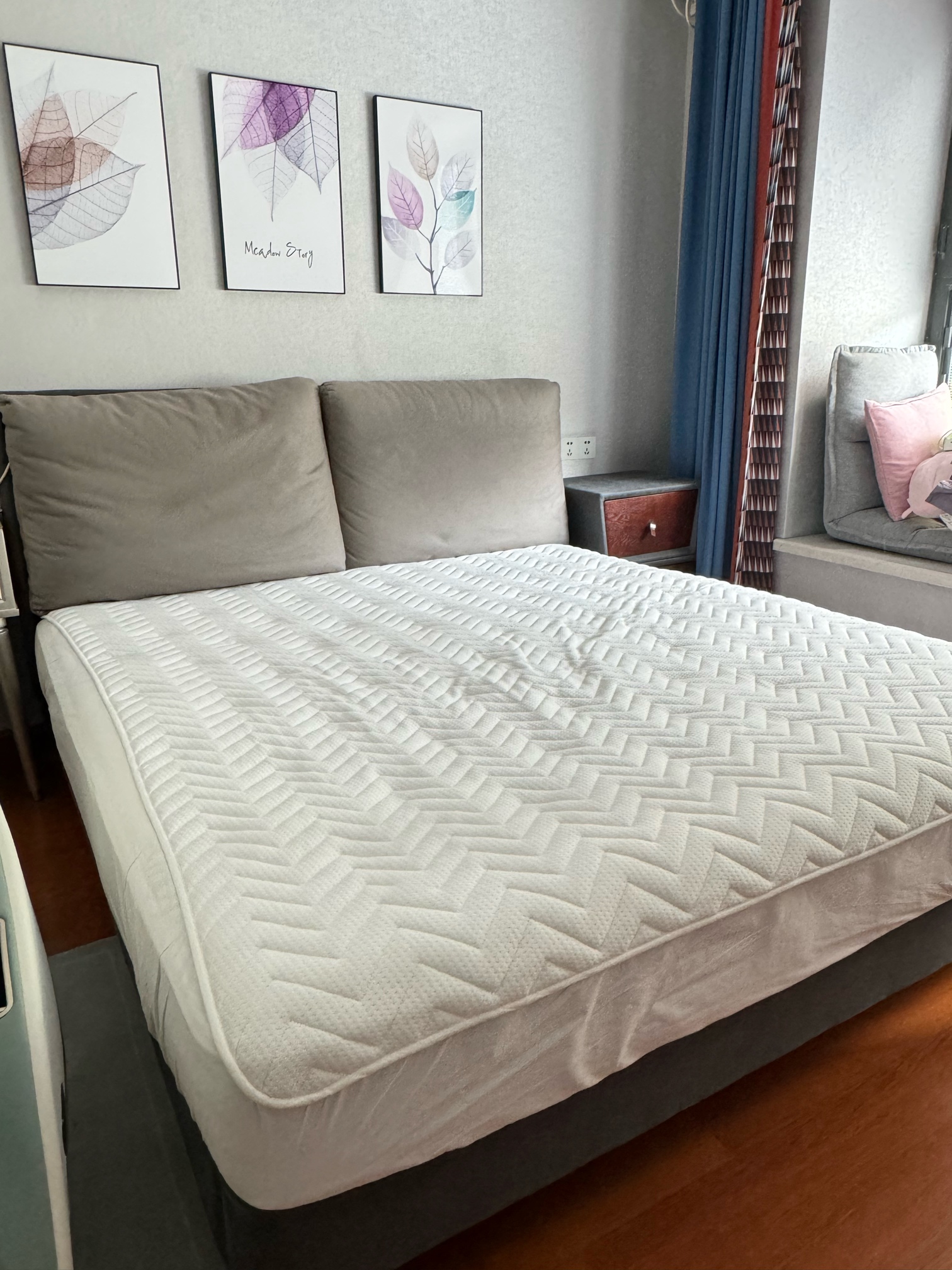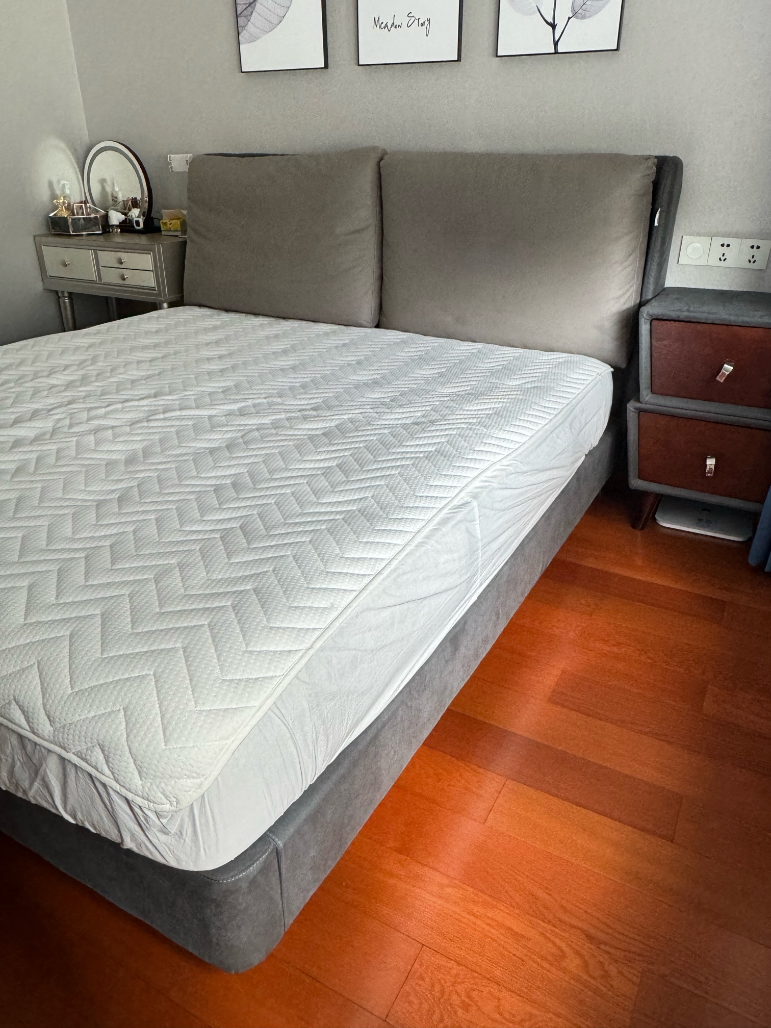 100出科技布软包裸床一张(带床头柜),江阴市区自提,加V:13815137005