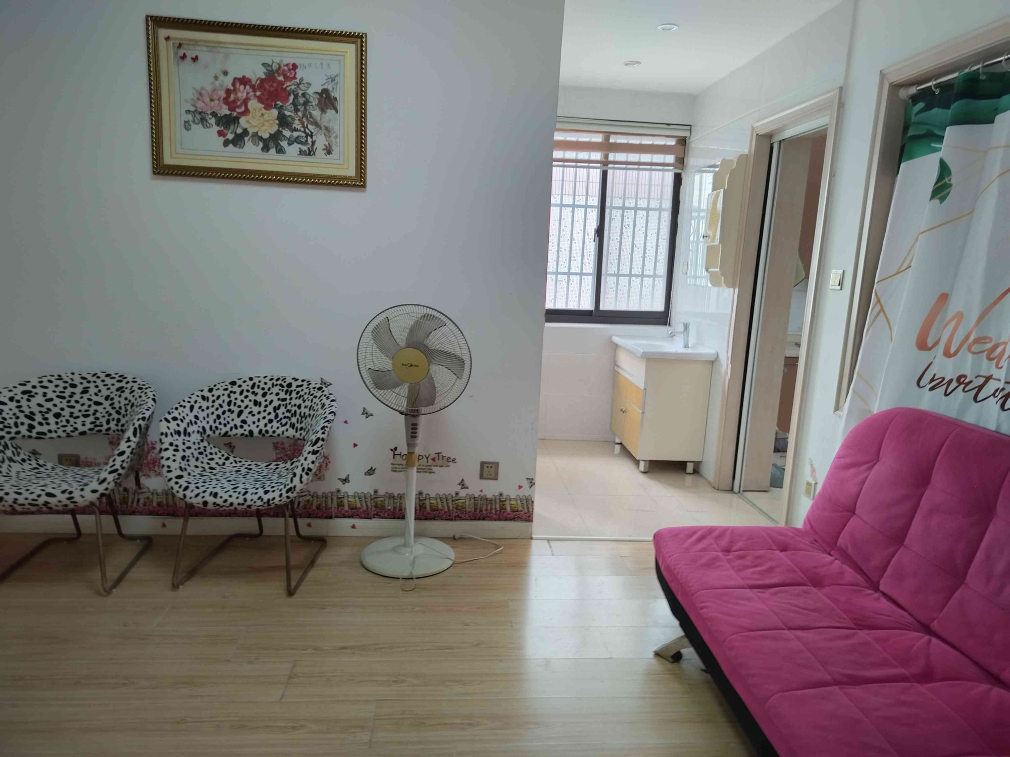 文定四村3楼90平米,柚木装1400一月。