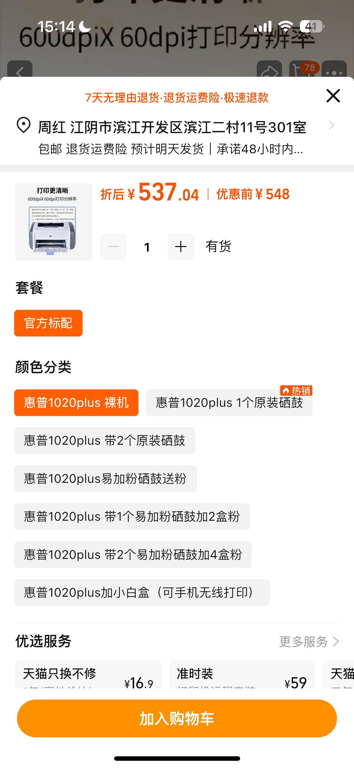 99元转惠普1020打印机一台,可连笔记本及台式电脑