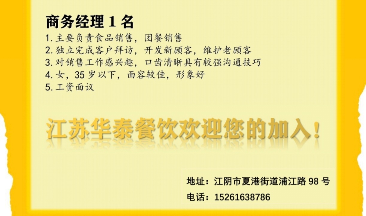 招聘商务经理一名
