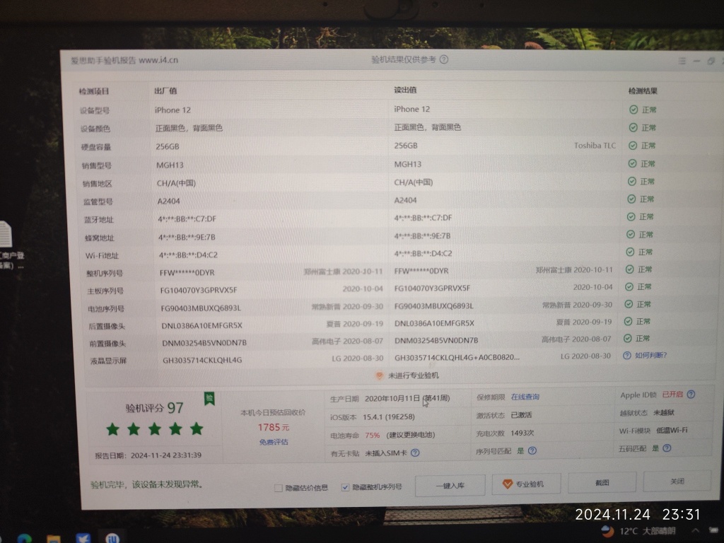 iPhone12 256G.黑色,9.5成新