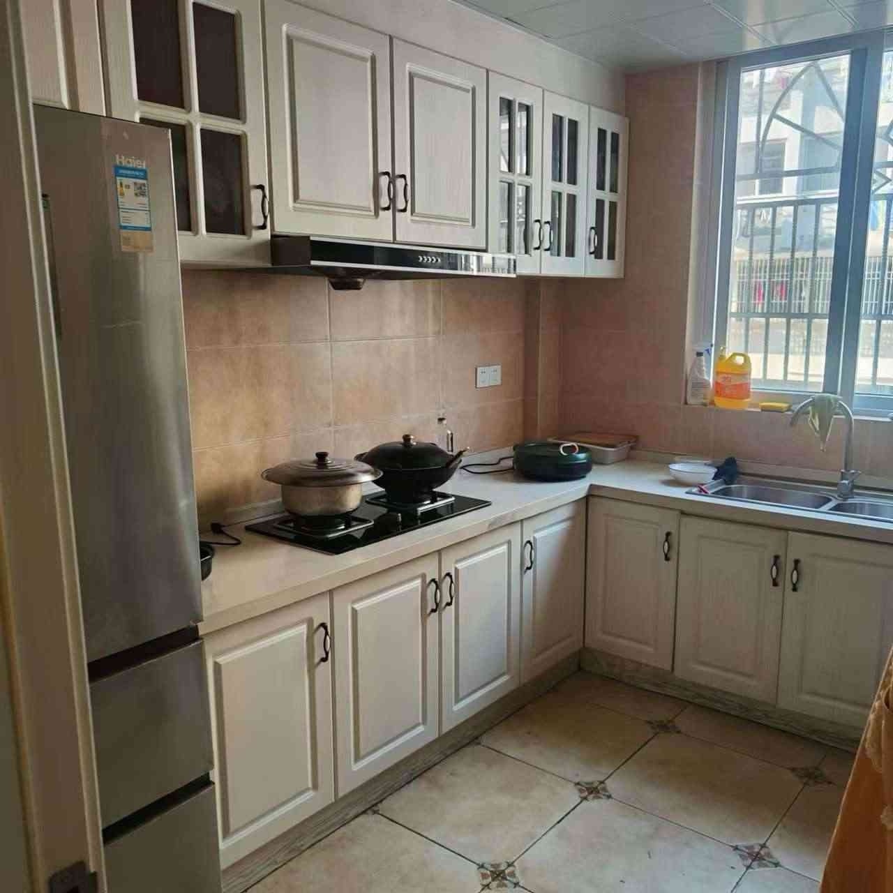 文定四村3楼90平米,柚木装1400一月。