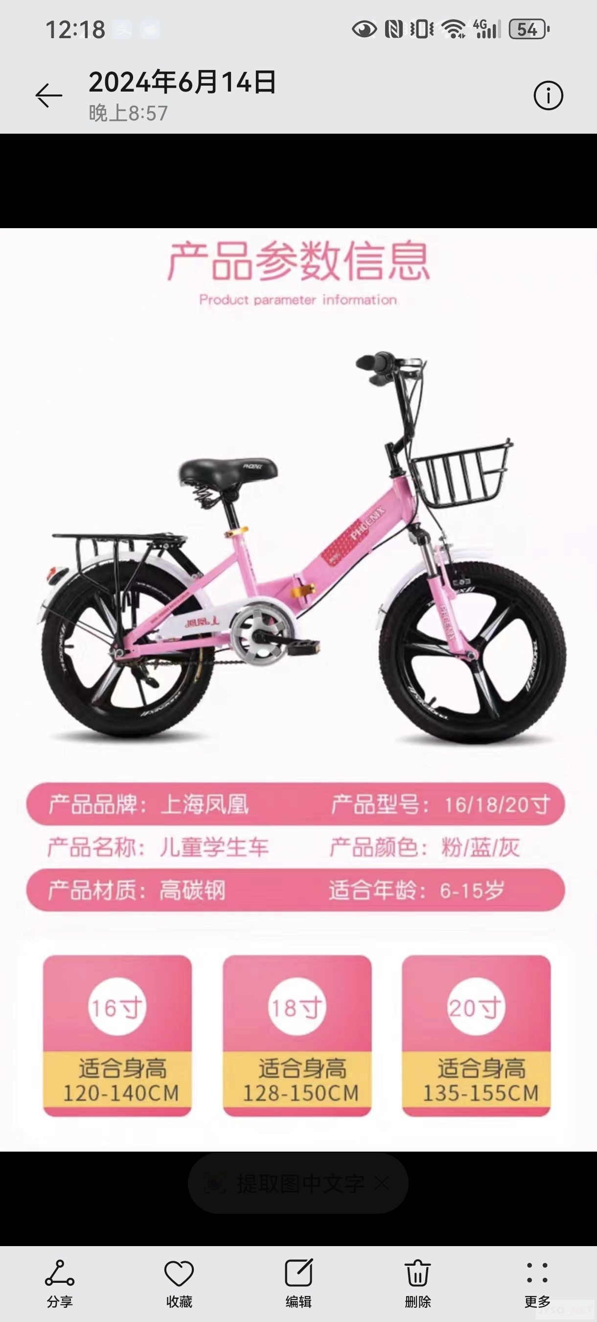 出18寸女童自行车
