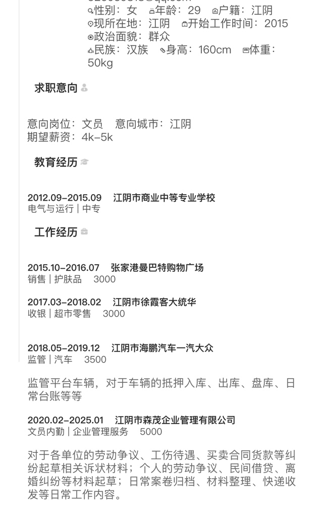 期望找个相关的工作,文职这一块的,月薪期望在4-5k一个月,期望上班时间在8.00-17.00之间,希望在城东这边的单位或者徐霞客镇周边单位。