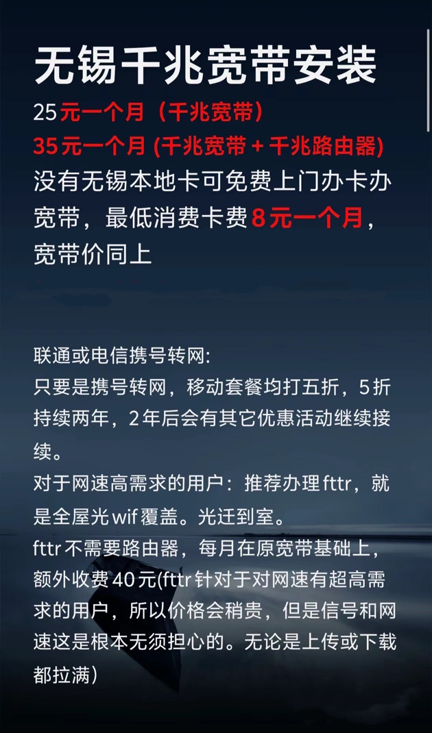 25元一个月(千兆宽带)
