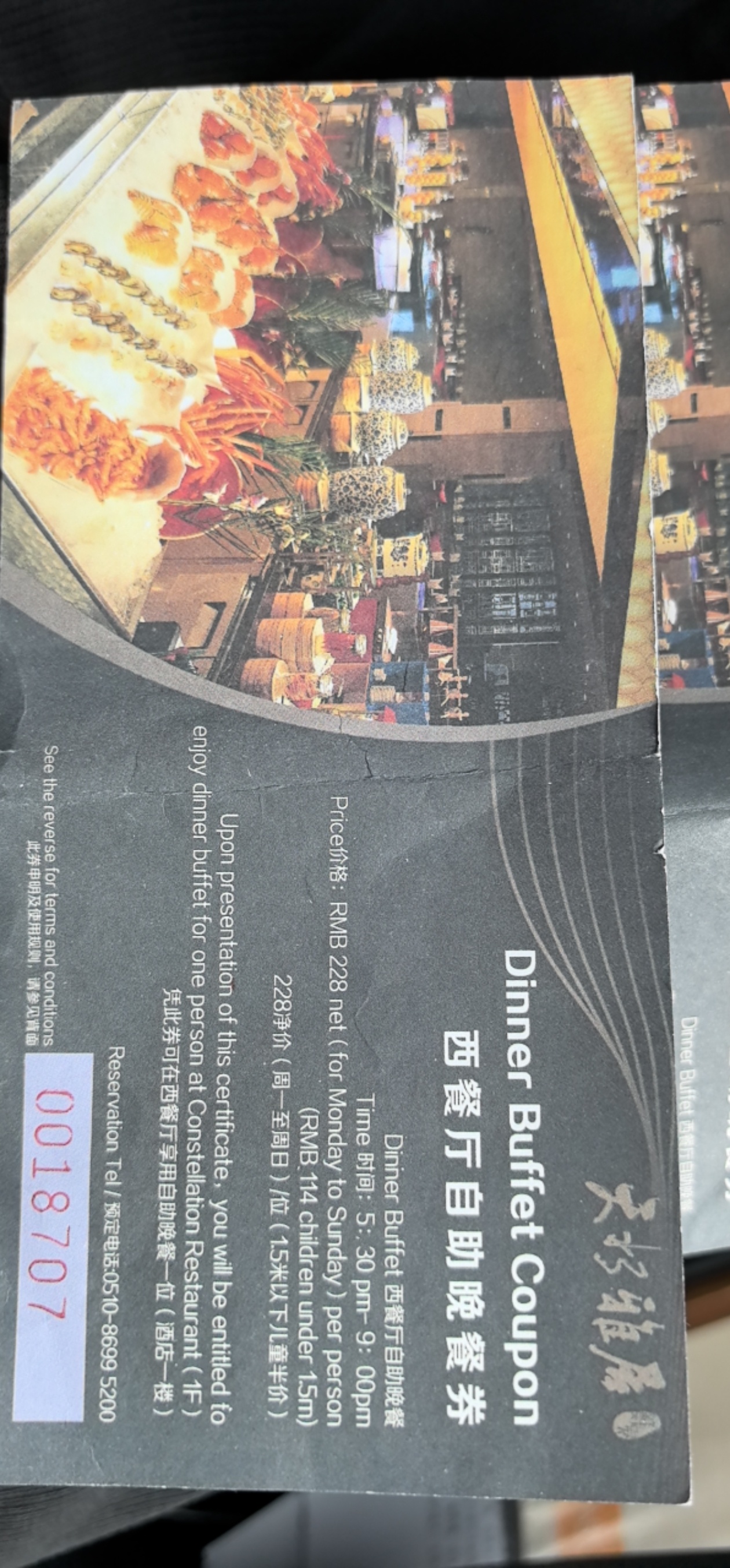天水雅居自助晚餐券两张200元