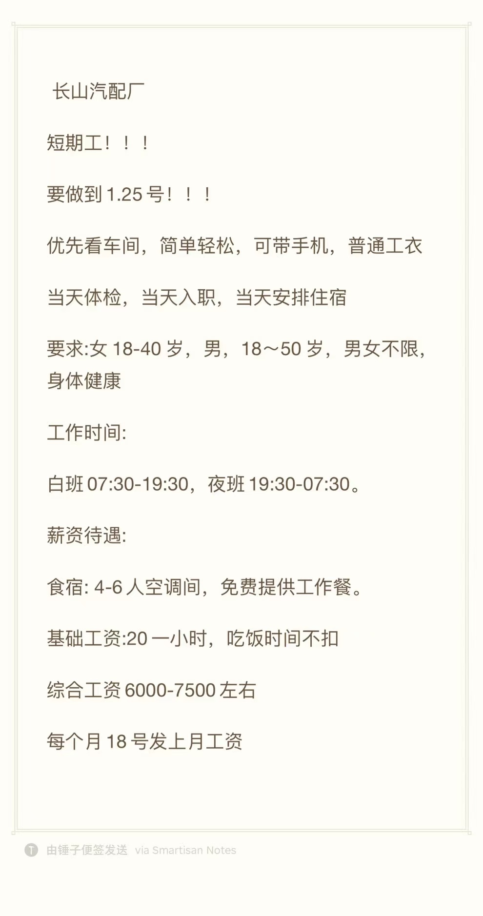 长山汽配厂,短期工!!可日结!! 报名18914227705