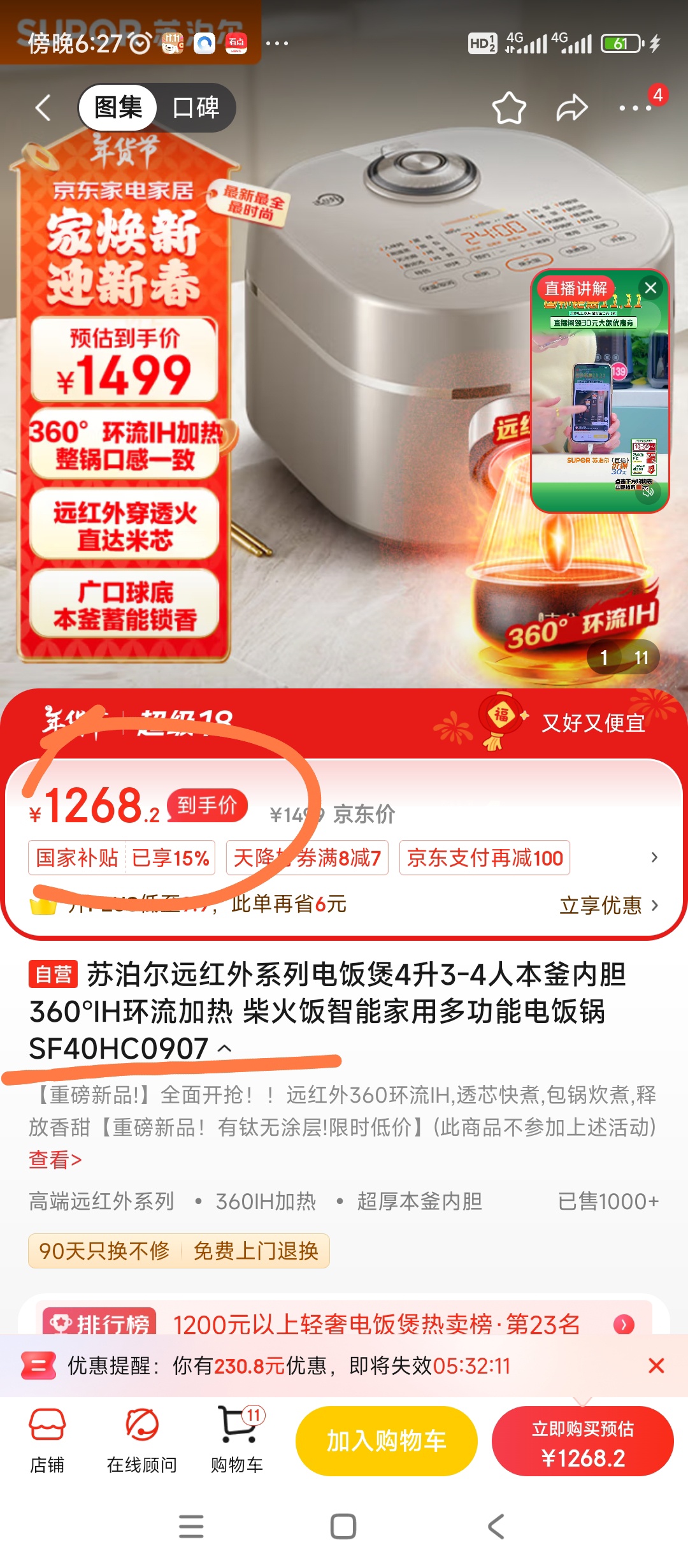 苏泊尔远红外电饭煲全新未拆封 !!京东扣完国家补贴还要1200,700一台出了 瑞祥全球购门店 发货,官方正品!