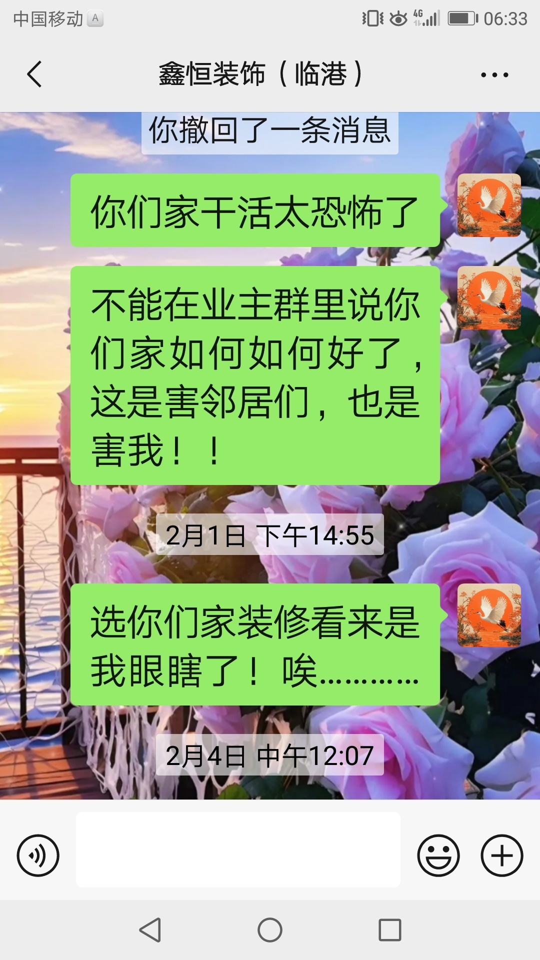本人以踩坑,望装修的朋友避开临港鑫恒装饰小公司,东北佬坑的很,忽悠业主,偷工减料