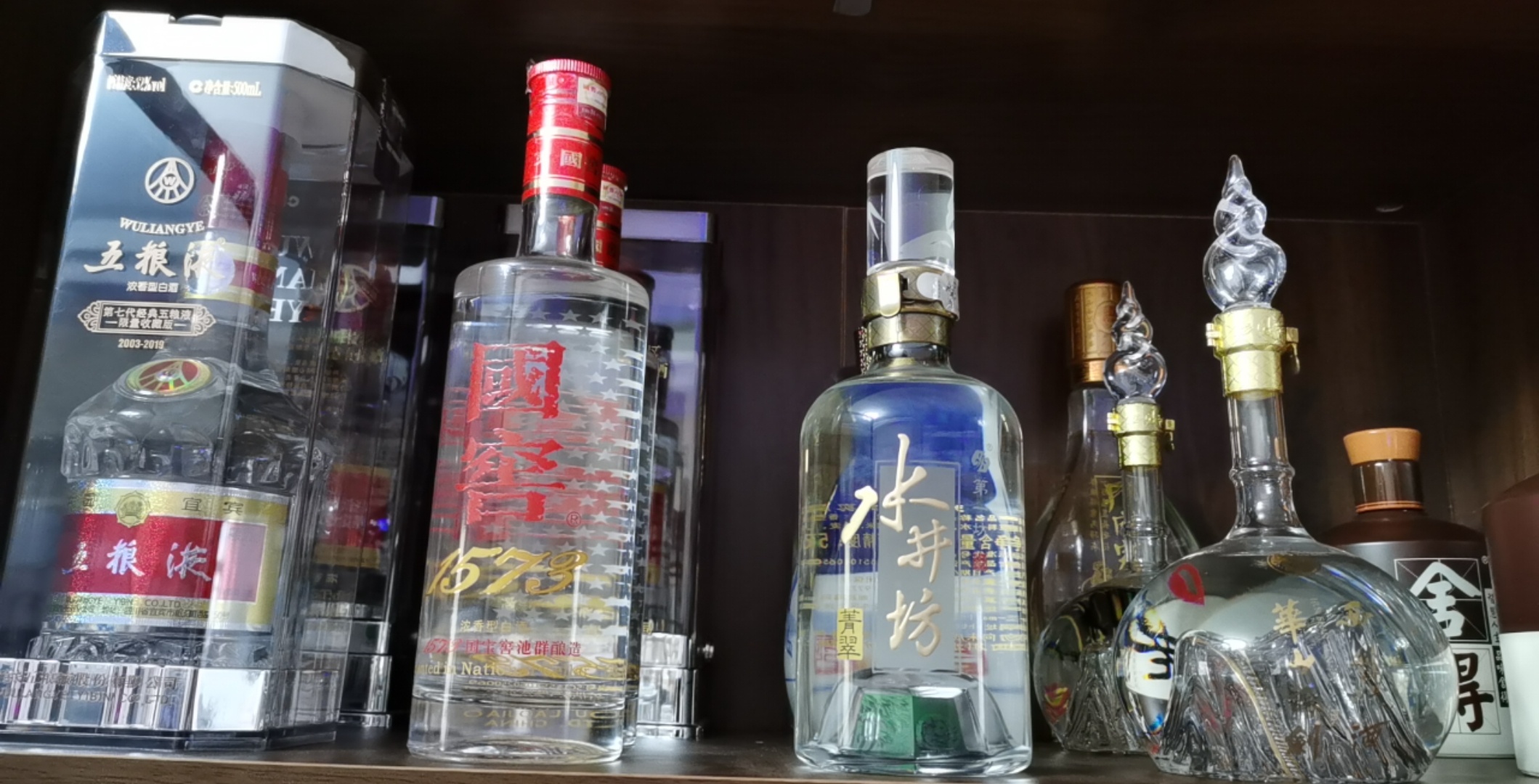 出几瓶摆柜的酒