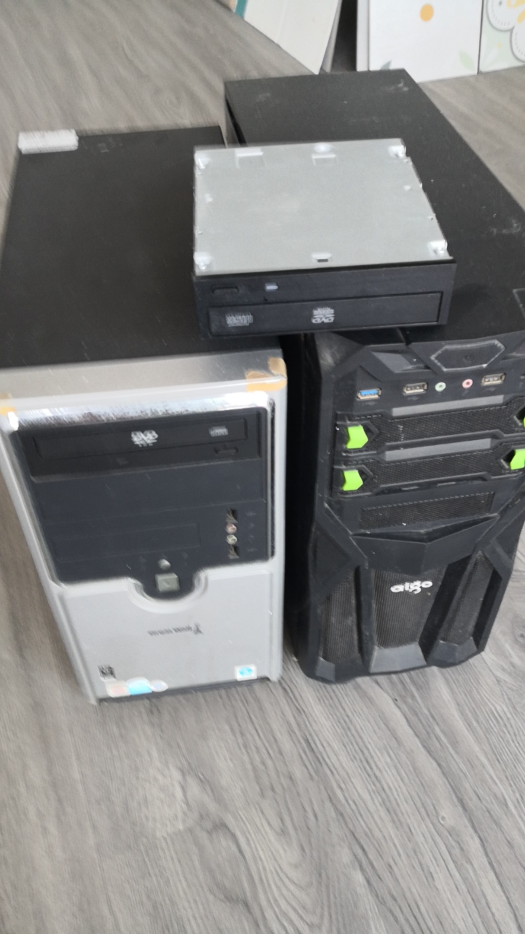出两台电脑主机,一台dvd