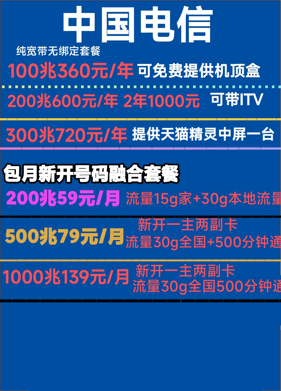 江阴电信宽带优惠办理安装