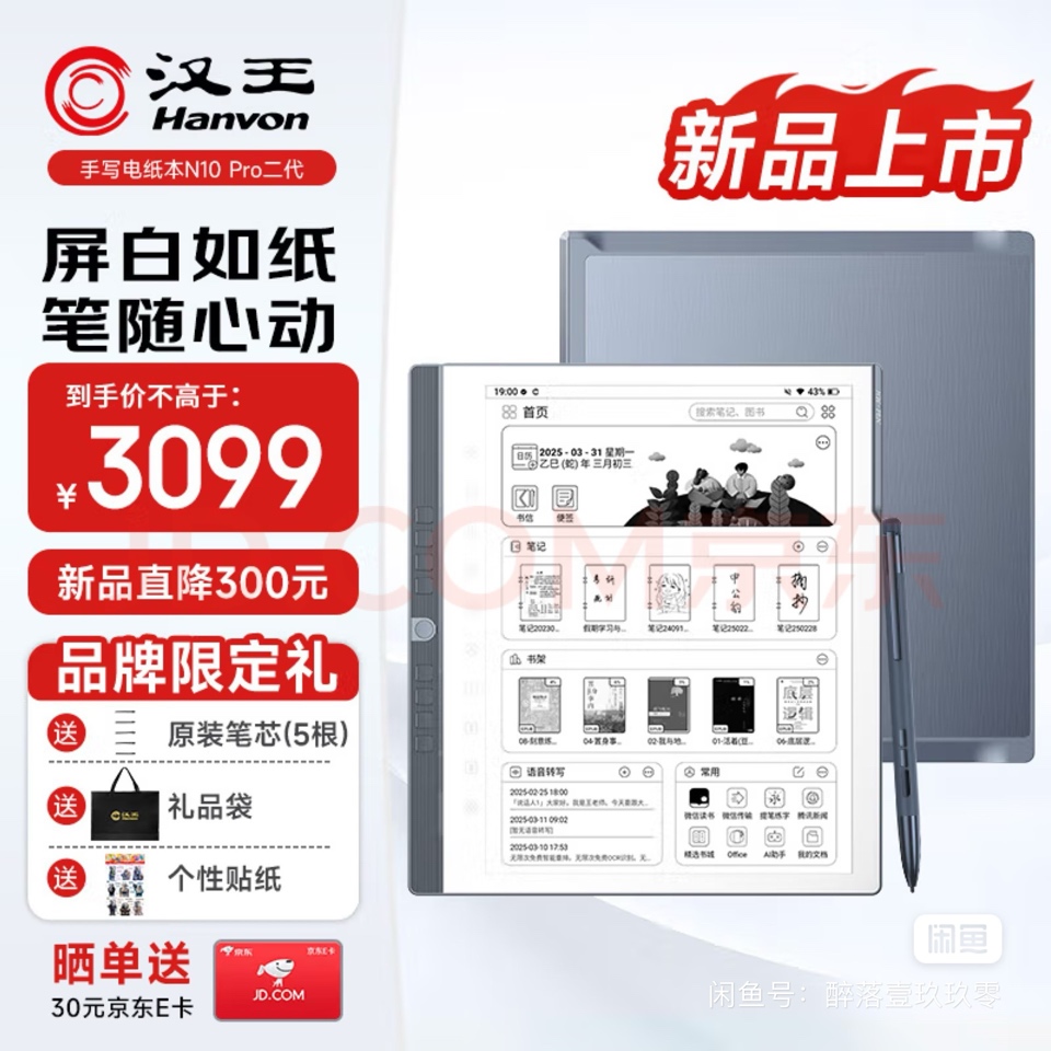 全新未拆封汉王N10Pro二代 300PPI电子书阅读器墨水屏电纸书电子笔记本智能办公本平板电脑128G