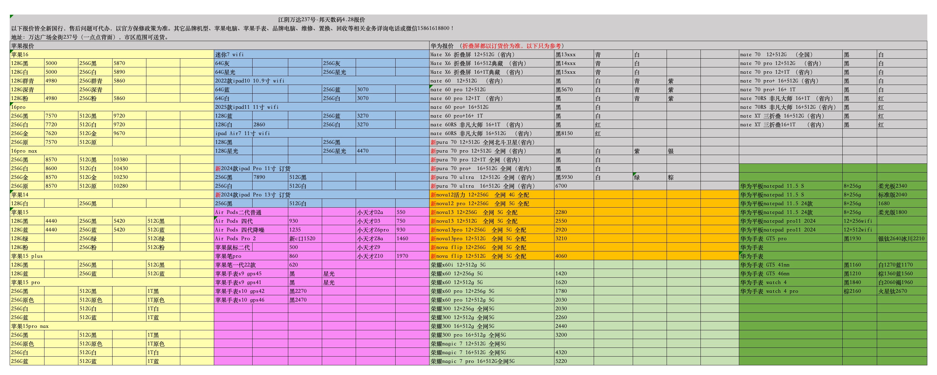 苹果华为荣耀4.28报价
