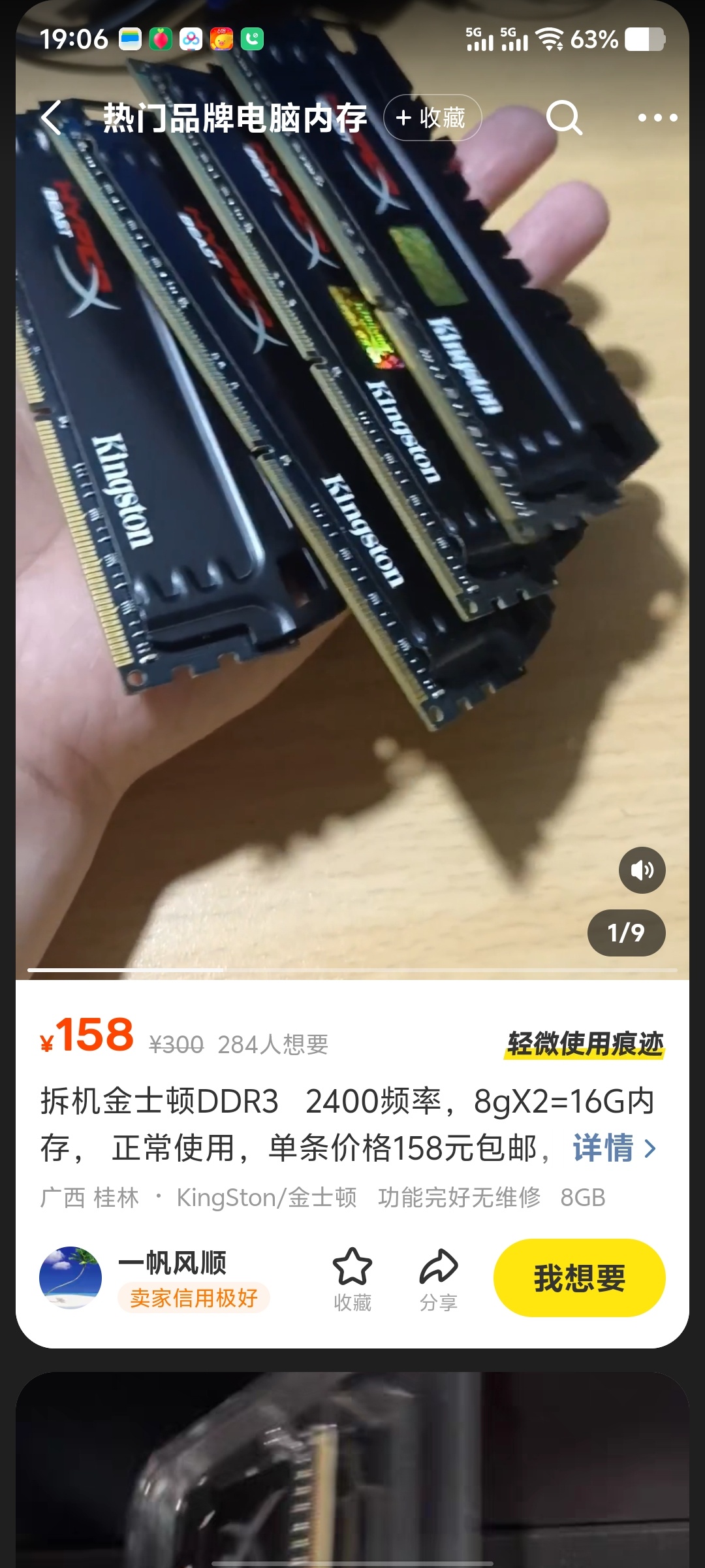 金士顿16GB DDR3 2400MHz双通道套装 2 X 8G骇客神条野兽系列 老电脑升级加强非常合适 200元双通道套装不单卖 需要的电联18961639093 先自行了解清楚这个系列内存性能确定有需要再联系。不买不要乱跟帖!!!