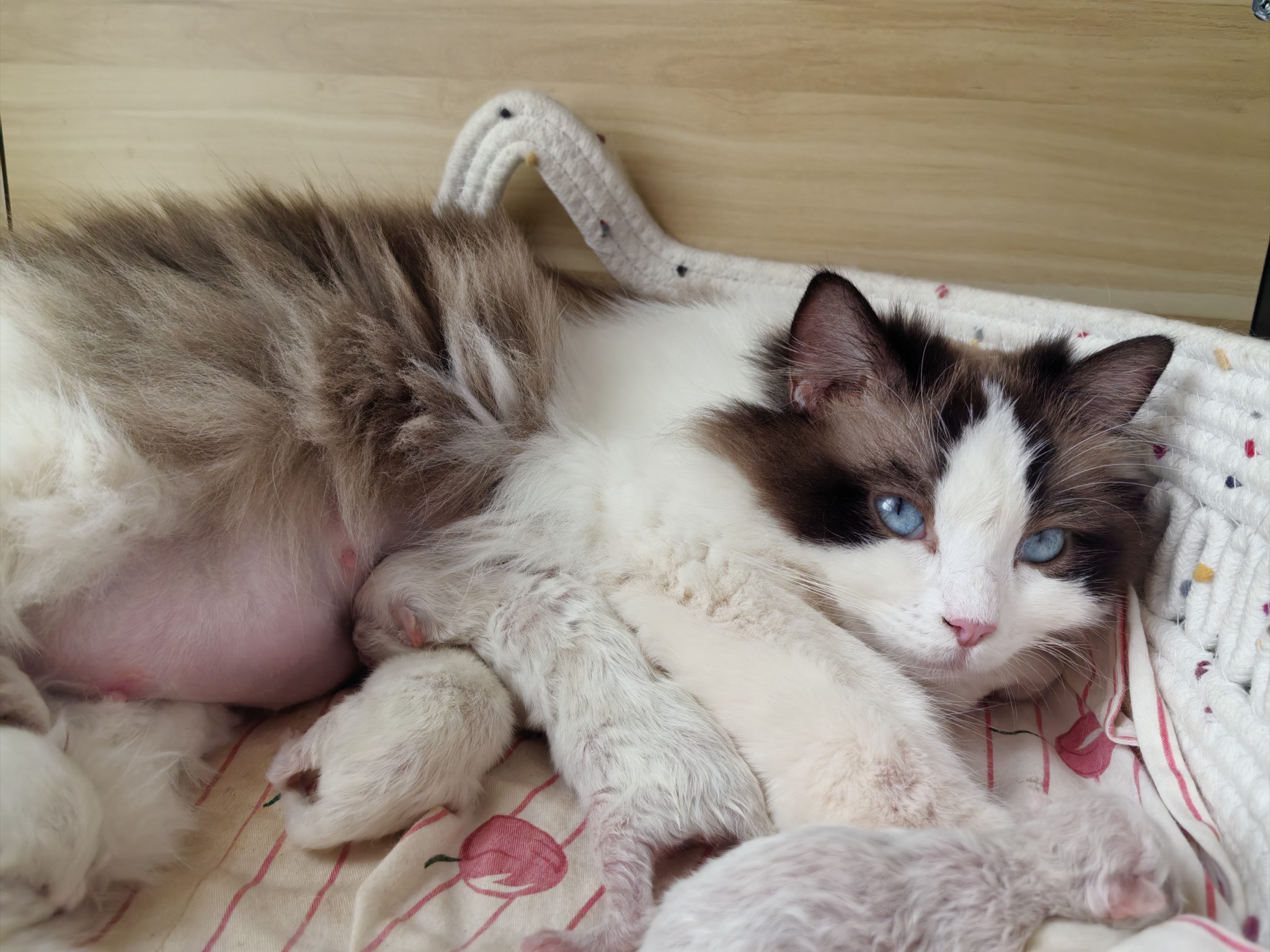 自己家养布偶5-5刚产下一窝小猫崽,千元找奶爸奶妈,
