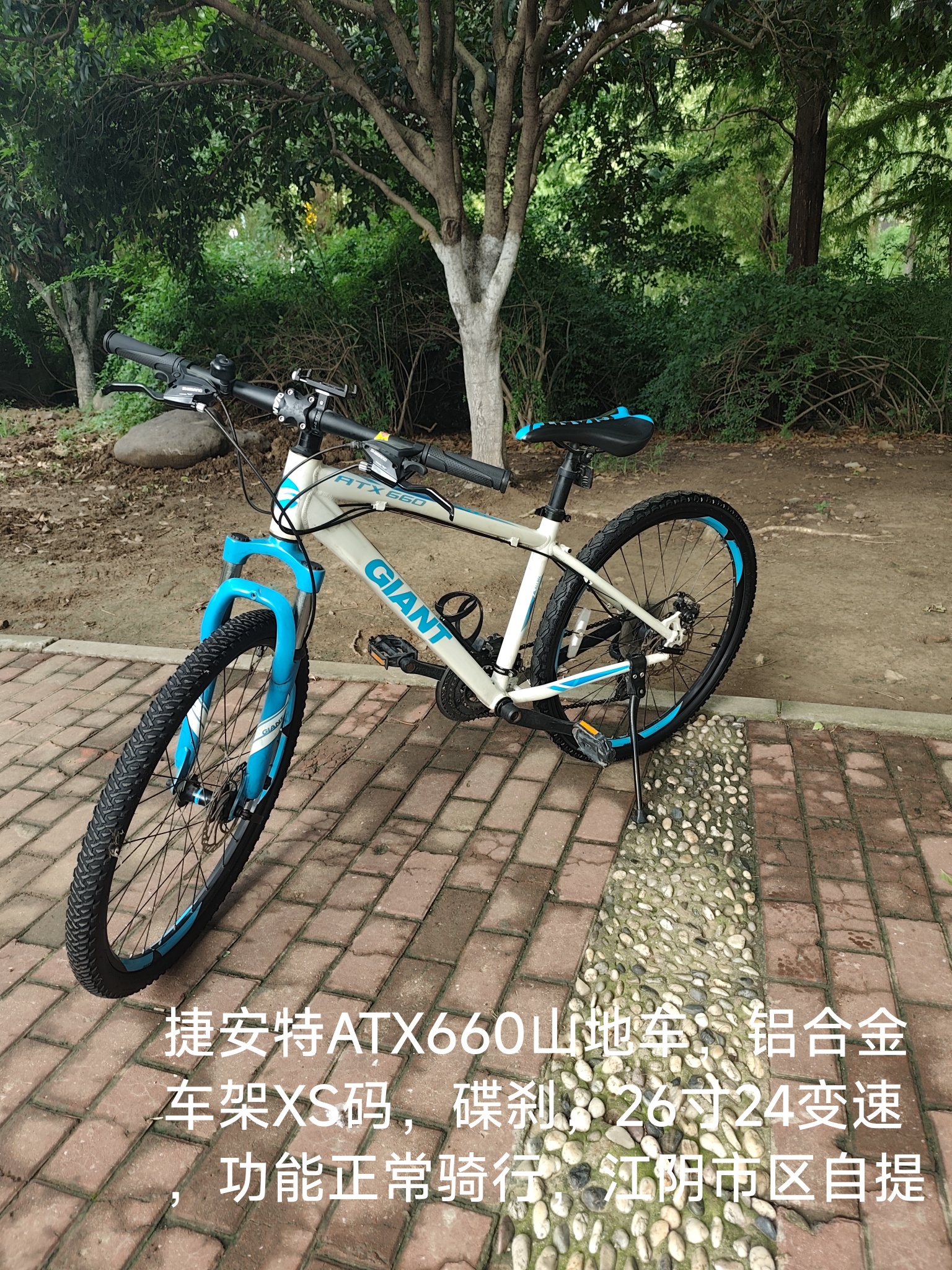 捷安特ATX660山地车,铝合金车架XS码,碟刹,26寸24变速,功能正常骑行,江阴市区自提,有意私聊微信sk942691236