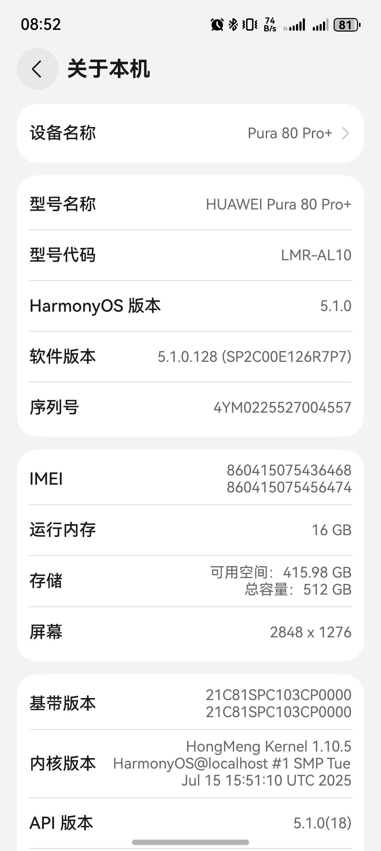 出自用 华为。P80 pro+ 黑色 16+256