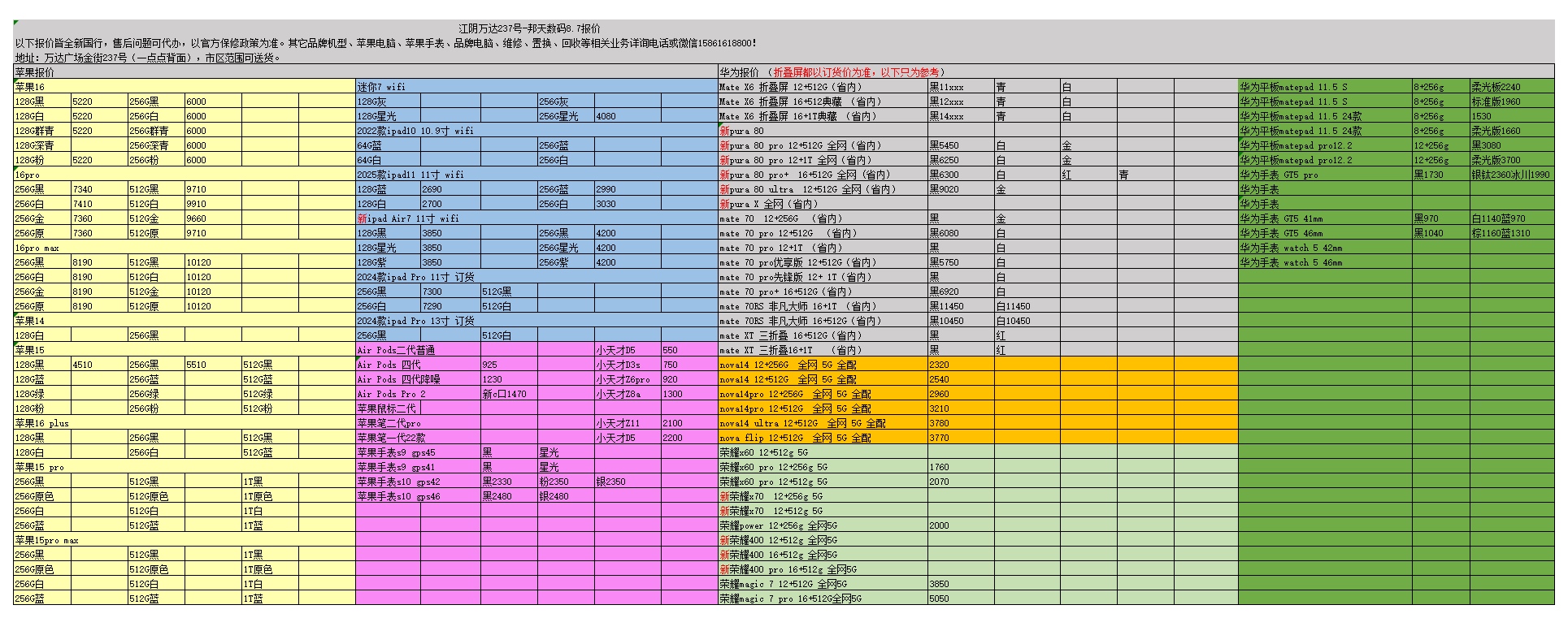 苹果华为荣耀8.7报价